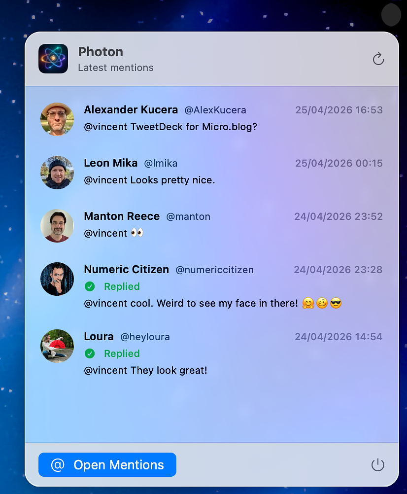 A bit more work-in-progress for my special Micro.blog app I am building for myself. It's got a menu bar app (I know, missing icon).
