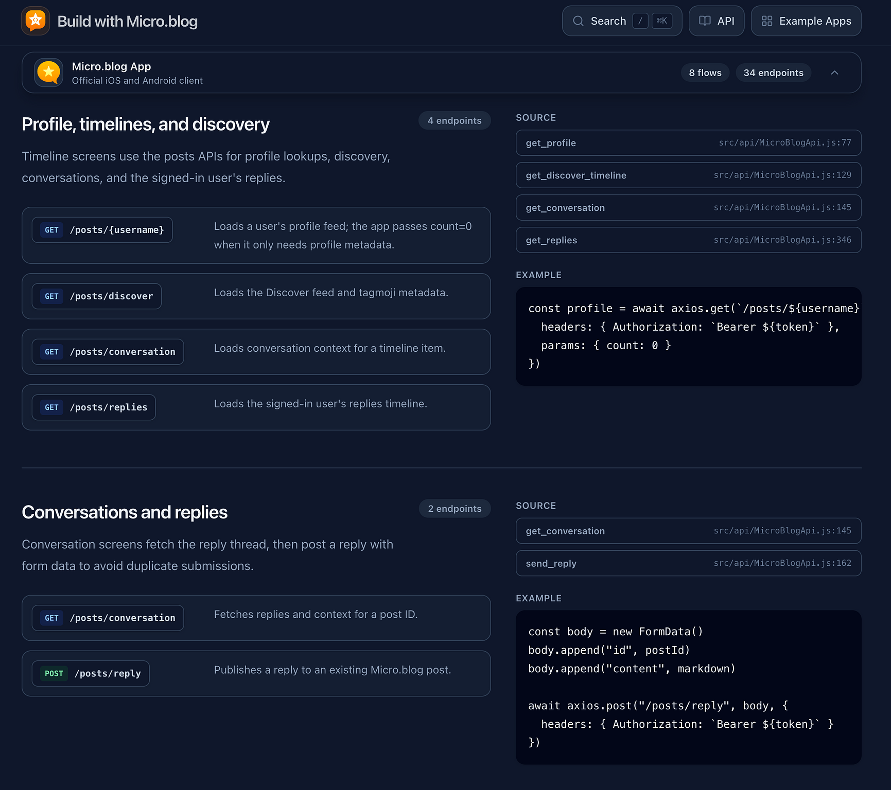 Ready to unleash Build with Micro.blog by the weekend. 151 total API endpoints covered and 4 example projects (the official apps) with details on each.